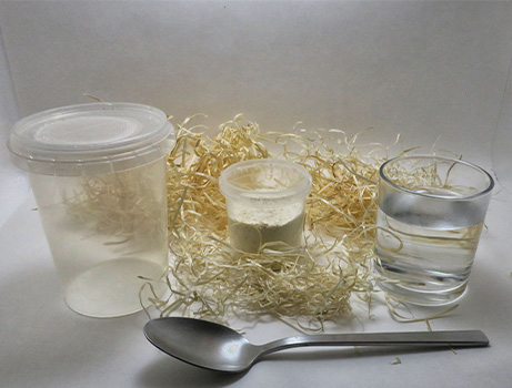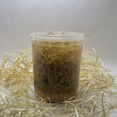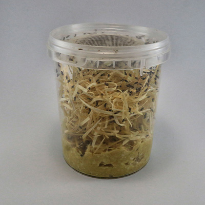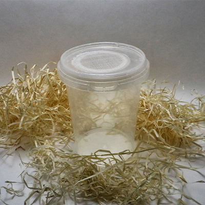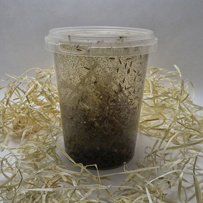 La paille de bois est anti-fongique, résistante à l’humidité, et servira de support pour les drosophiles et les larves.