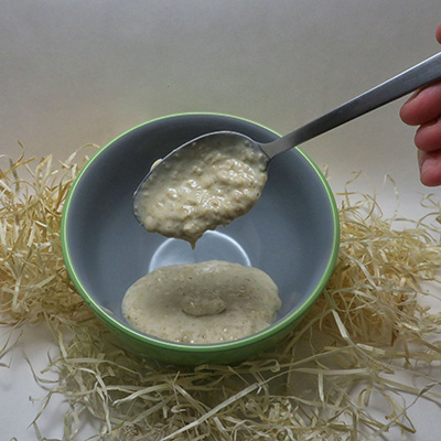 On mélange la pâtée, l’eau et le vinaigre jusqu’à obtention d’un mélange homogène.